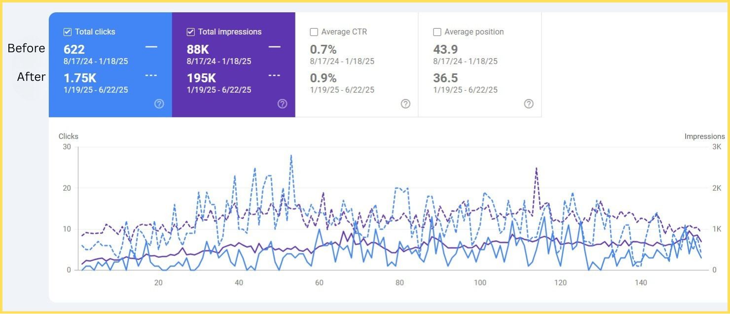 Result? Google started taking Bioresus seriously. Keywords climbed, impressions grew, and CTR improved.